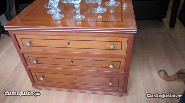 Mesa faqueiro com maquetaria, embutidos em pau santo e cerejeira.