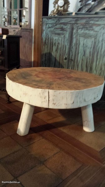 Mesa feita de tronco de madeira com três pés bonita para mesa de centro ou apoio
