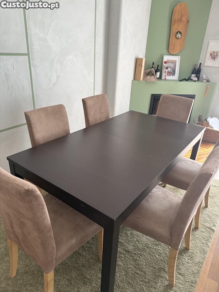 Mesa de Jantar retangular + 6 Cadeiras estofadas