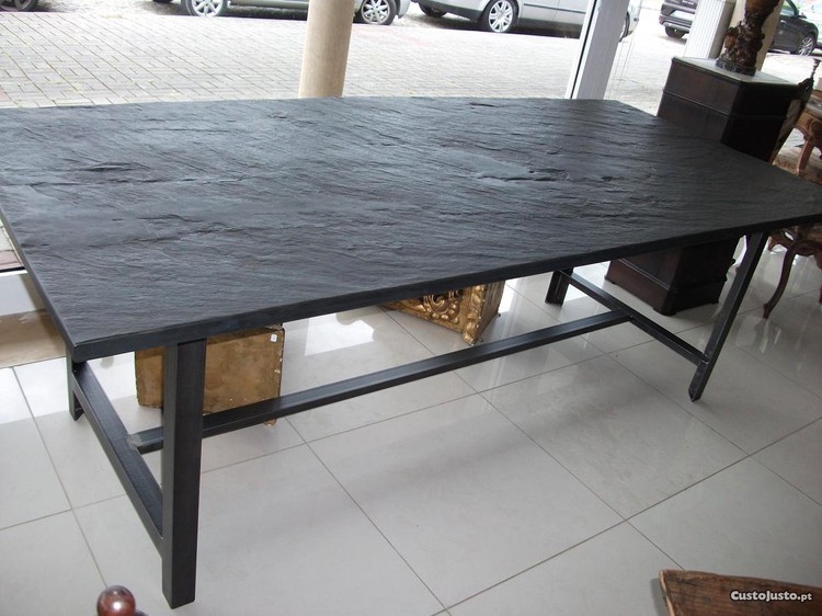Preço: 1 195 €Mesa pés em ferro e tampo em ardósia