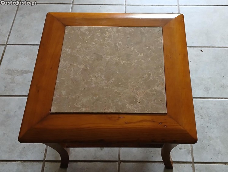 Vendo mesinha de sala em madeira maciça, com pedra em mármore, 57 x 57 cm e de altura 44 cm, conforme fotos