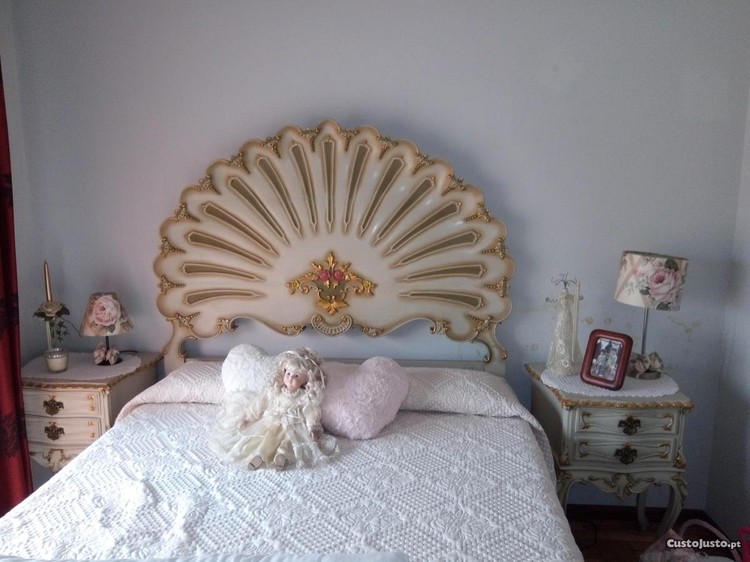 Mobilia LACADA bem Estimada , Cama muito «Rara« + 2 Mesinhas ,Roupeiro, Comoda com Espelho + Bau.