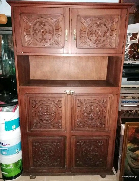 Vendo móvel trabalhado em madeira, em tempos na parte inferior existia uma cama em ferro abria se o tampo e depois puxava se a cama.