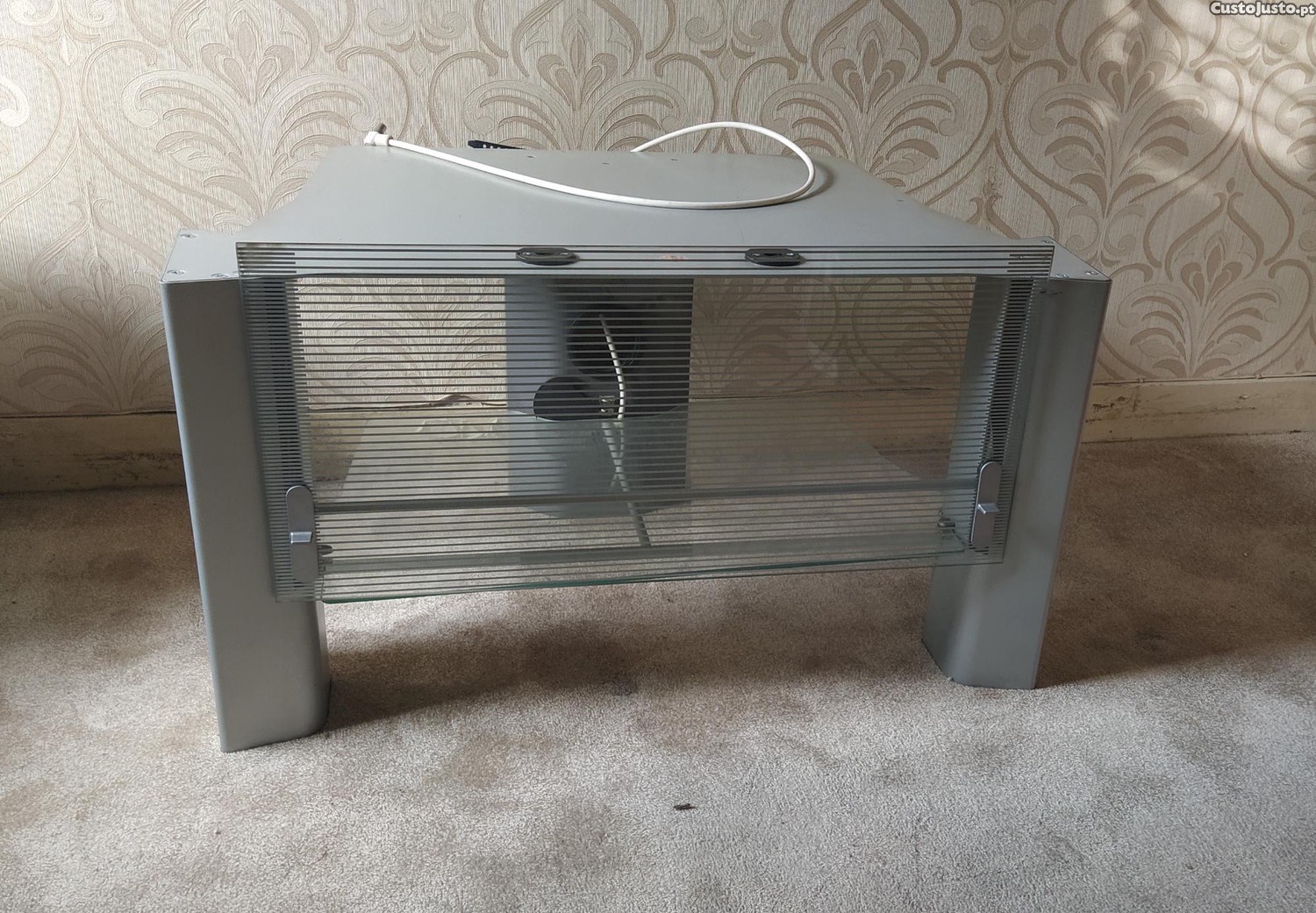 Móvel para TV em Aço para TV com porta móvel em vidro na frente que abre na vertical. Prateleira em vido.