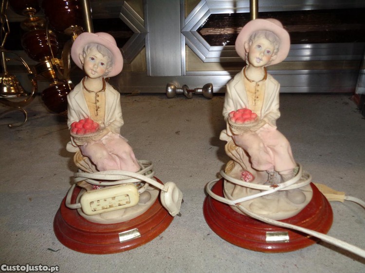 Par de candeeiros de mesinha de cabeceira feitos em marfinite, os dois meninos