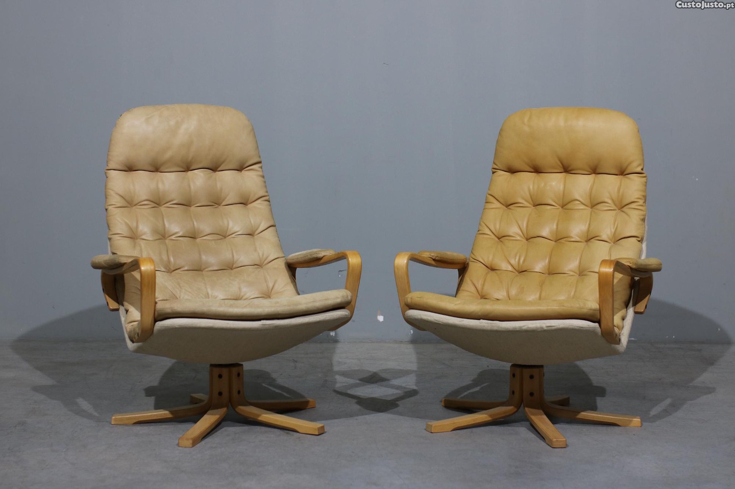 Par de poltronas Sam Larsson modelo Mona em faia e couro