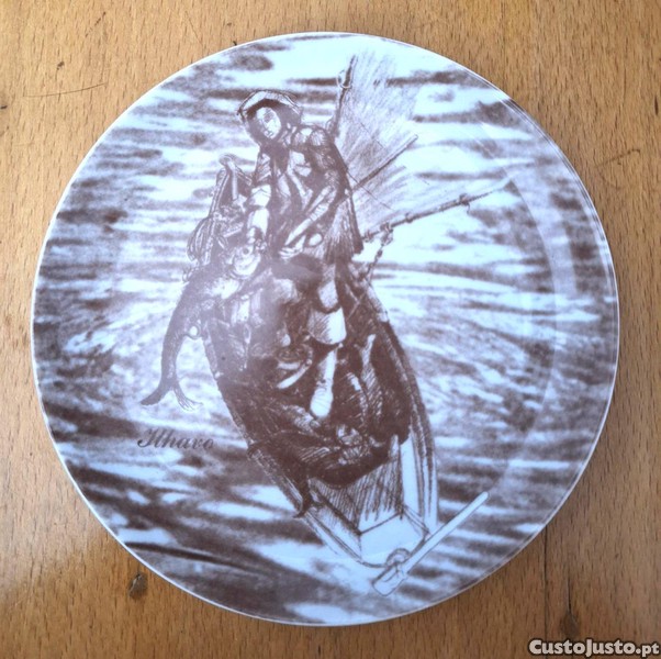 Preço: 10 €Prato decorativo em porcelana Quinta Nova, cena de pesca