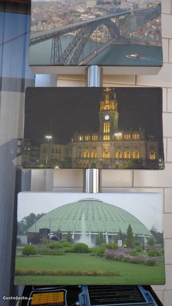 Moldura com três Icones da Cidade do Porto, pintura sobre tela, formando uma moldura: