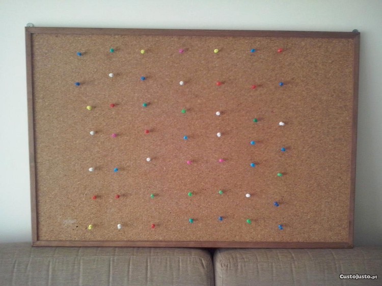 quadro em cortiça como novo, com 2 faces, moldura em madeira e os acessórios para pendurar.