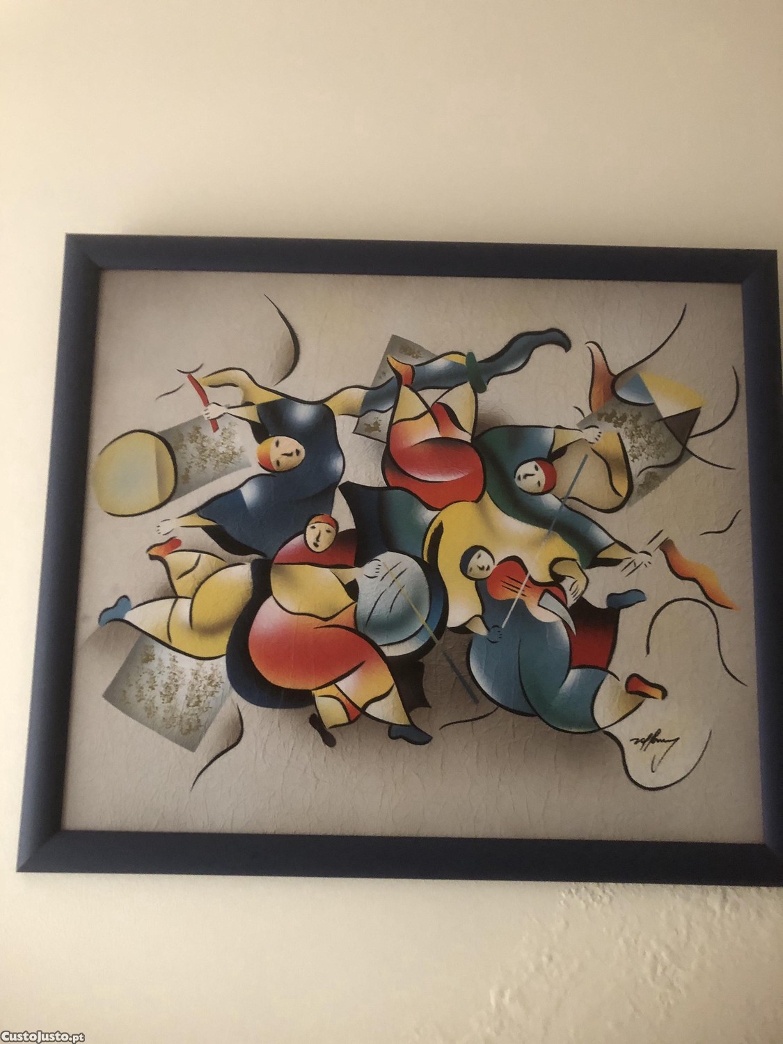 Preço: 15 €Quadro figuras em tons de azul. Moldura em azul.