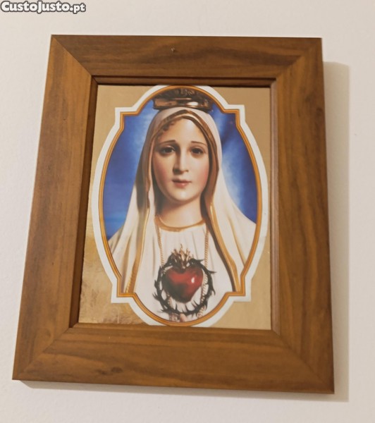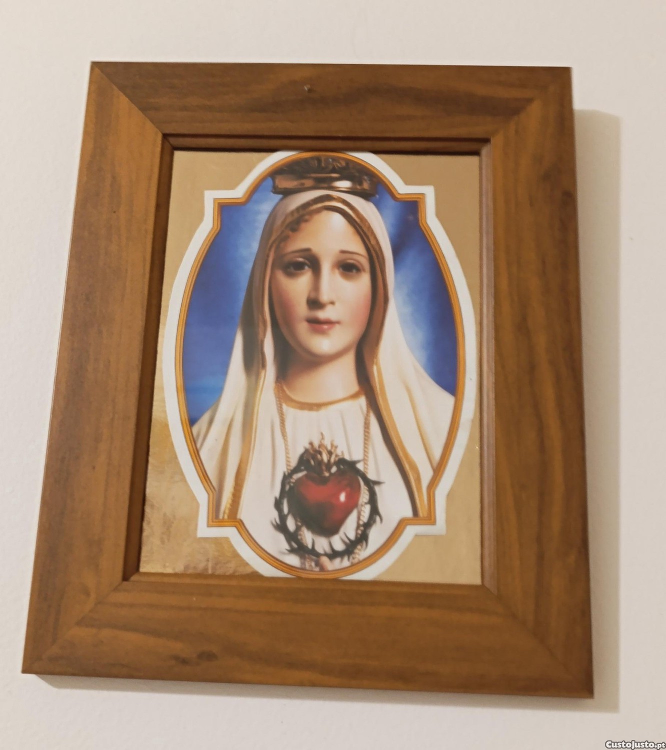 Quadro Virgem Maria, com vidro protetor da imagem e moldura em madeira -