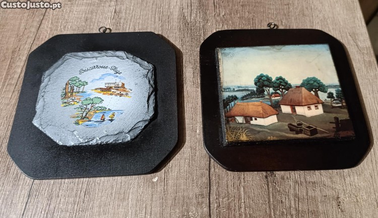 Sendo um em serigrafia sobre madeira, e outro pintura direta em pedra de Xisto