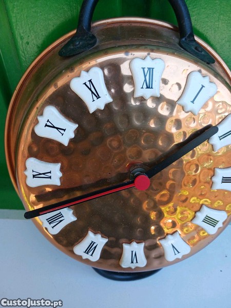 Preço: 15 €Relógio bacia em cobre com números em numeração romana a pilhas a trabalhar bem