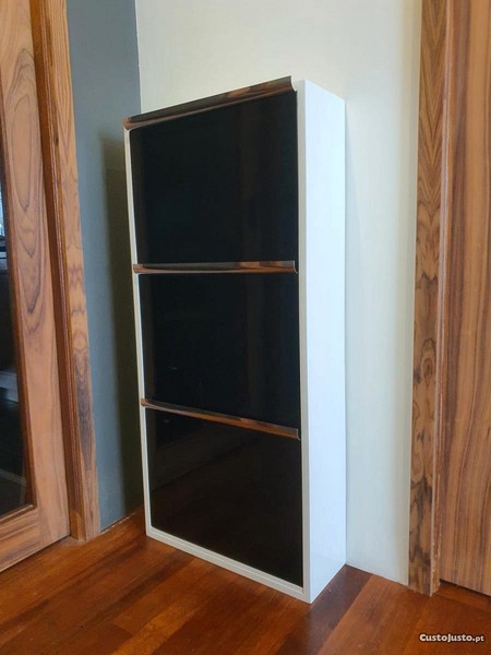 Sapateira de parede, MDF hidrofugo 19 mm, alto brilho,3 gavetas com puxadores/calhas de aço inox alto brilho, design elegante e personalizado, feito na fábrica de Paços de Ferreira, como novo, A117xL54xP19-250EUR
