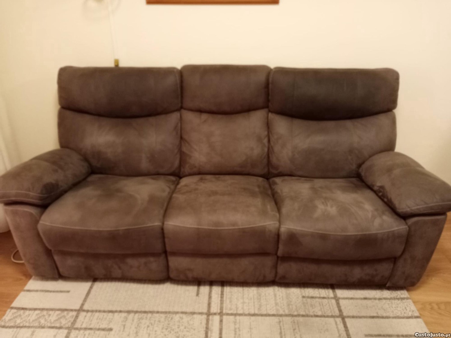 vende-se sofá como novo, com 3 lugares, 2 chase longue extensíveis, na cor castanho-acinzentado, tecido alcântara.