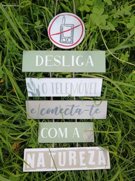 Vendo tabuleta ou placa decorativa em madeira. "desliga o telemóvel e conecta te com a natureza".