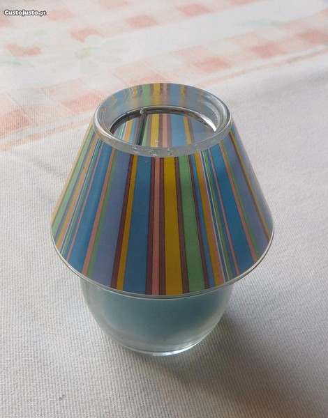 Preço: 5 €Vela em forma de candeeiro, formada por 3 peças, adaptáveis a outras velas, em vidro
