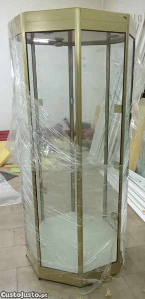 Preço: 200 €Vitrina expositora octogonal elegante estrutura em alumínio dourado e luz integrada!