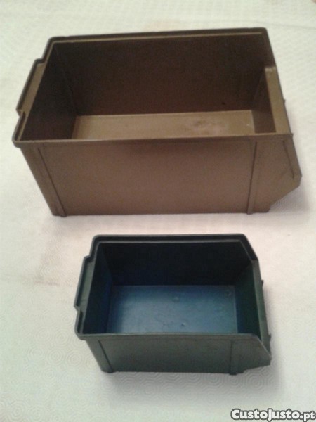 ATENÇÃO : PREÇOS para lotes de 2 unidades !! CAIXAS de bico, empilháveis, tipo contentor sem tampa plástico rígido resistente de alta qualidade para diversas utilizações. Ideais para arrumação / organização em menos espaço. - LOTE 1 EUR.4,00 2 unidades cor azul - medidas máximas exteriores em cms: comp.23,5 x larg.14 x alt.13 - peso de cada unidade: 340 grs - LOTE 2 EUR.8,00 2 unidades cor verde dourado - medidas máximas exteriores em cms: comp.46 x larg.30,5 x alt.20 peso ded cada unidade: 1,670 kg ARTIGOS usados de 1 só dono, em bom estado. Caso queira peça mais fotos e informações pf contacte. Este preço é o mais baixo possível. O anúncio estando activo é porque o produto está disponível. TROCAS, sem interesse. Preço válido para entrega na zona da Areosa / circunvalação do Porto ( ou outro local a combinar ) contra pagamento em dinheiro . Poderei tratar do envio para outra localidade com despesas e responsabilidade do com-prador. Pagamentos MBWAY , PAY PAL não disponível.