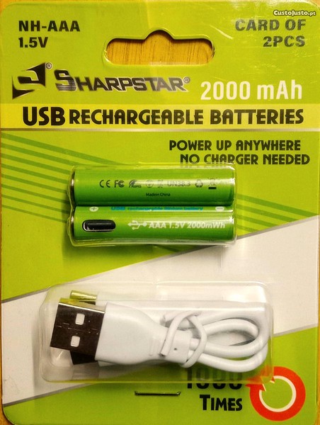 Preço: 6 €2x pilhas AAA USB recarregáveis