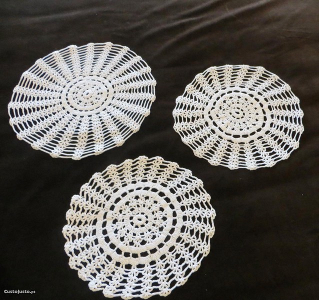Preço: 20 €4 Napperons croché feitos à mão brancos Diâmetros: 29, 26, 24 e 20 cm