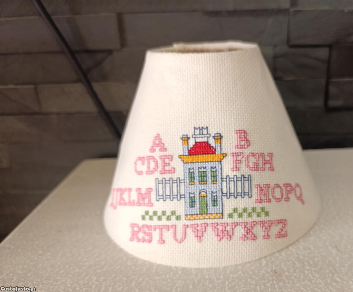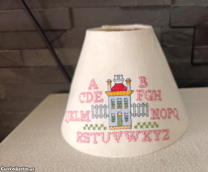 Preço: 6 €Abat-Jour candeeiro criança. bordado com o alfabeto e um castelo