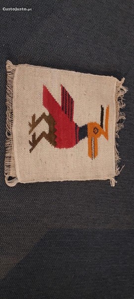 artesanato da América do Sul, de inspiração Inca ,com ave ,bordada em tecido/tela , para emoldurar ou outro tipo de decoração.
