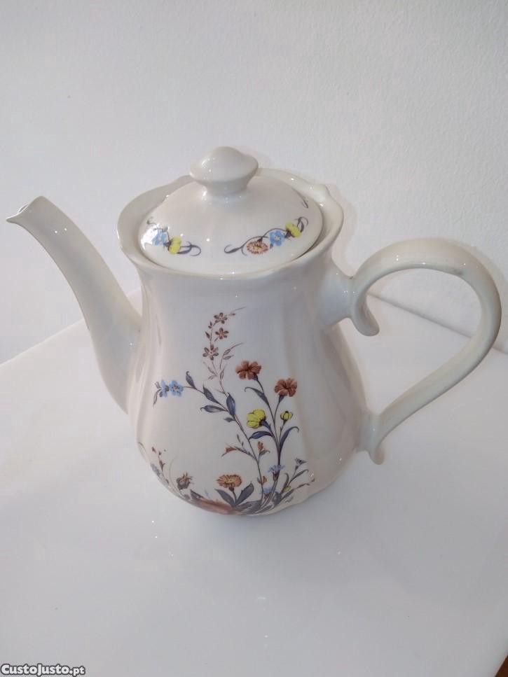 Bule usado, cuja tampa tem um encaixe para fixação, e em bom estado de conservação.