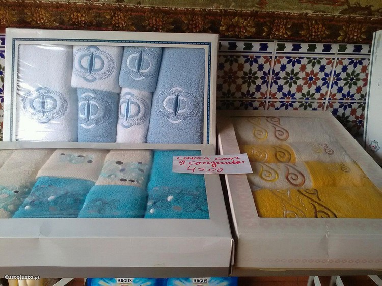 Preço: 40 €Caixa de dois conjuntos de toalhas de banho