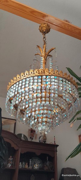 Vendo candeeiro vintage de sala, com pedras em cristal, em bom estado de conservação, pode ver sem qualquer compromisso