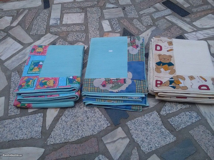Carpetes para quarto de criança , feitos em tear manual,em Portugal, bem batidos e grossos debroados a tecido de algodão aos bonecos para quarto de criança o preço é cada um, medidas 1,50 cm X 1,50 cm, novos artigos de loja
