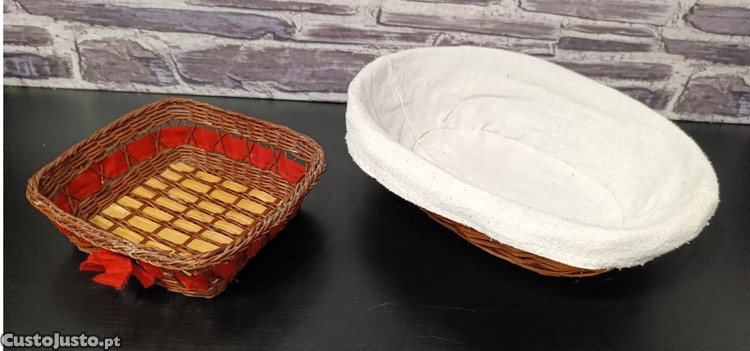 - 1 Cesto é oval e forrado a linho, removível para lavar, por exemplo. Este cesto é ideal para pão, com o forro e sem forro para aperitivos