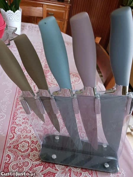Preço: 15 €Conjunto de 5 facas com suporte novas