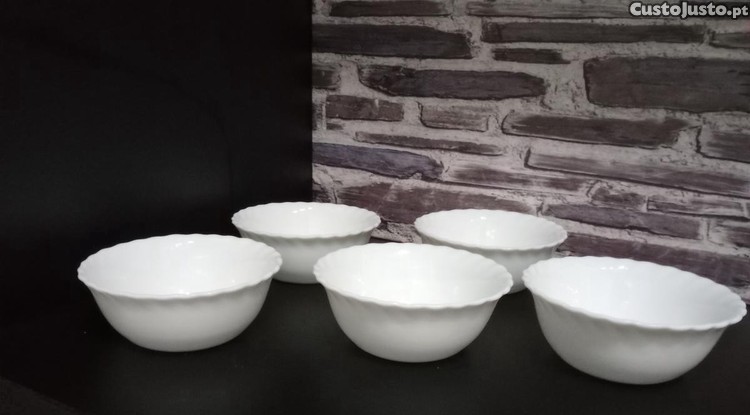 Conjunto de 5 tigelas / taças, em cerâmica vidrada ,brancas - Oferta portes envio