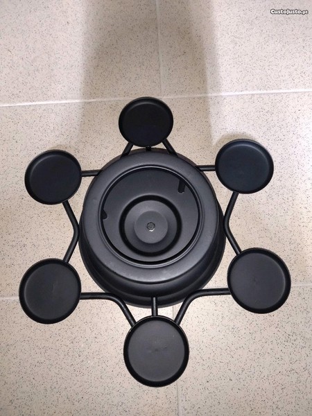 Constituído por panela em inox com cabo longo, suporte, queimador e 6 taças para molhos
