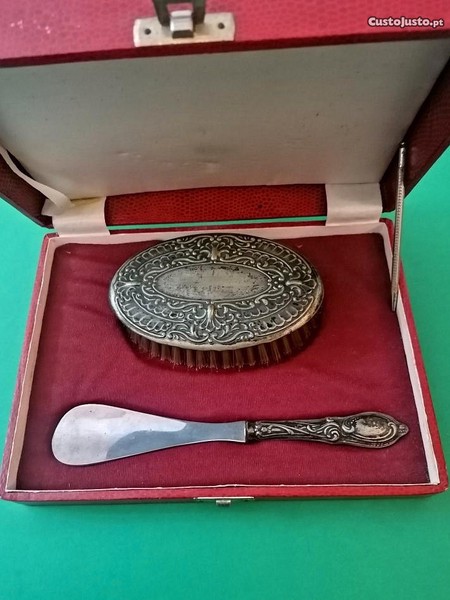 Preço: 38 €Estojo com calçadeira e escova em prata