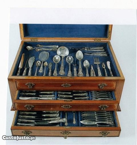 Composto por 179 peças no total. 23 talheres de servir e 168 restantes (Sopa, Peixe, Carne, sobremesa, bolo, chá e café).