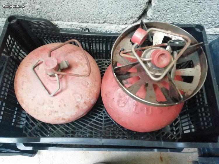 1 Fogareiro portátil com bilha de substituição, ideal para campismo.