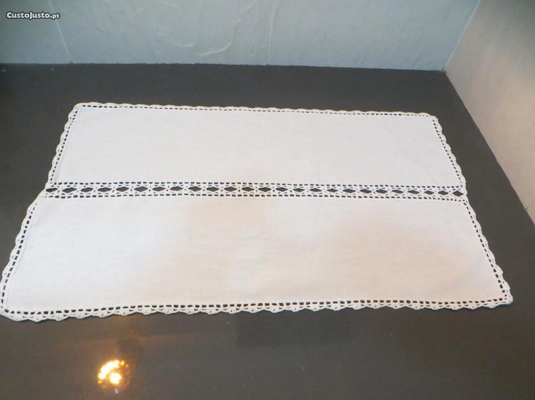 Preço: 7 €Napron em linho puro, orlado e com entremeio em croché - Medida: 52 x 31 cm
