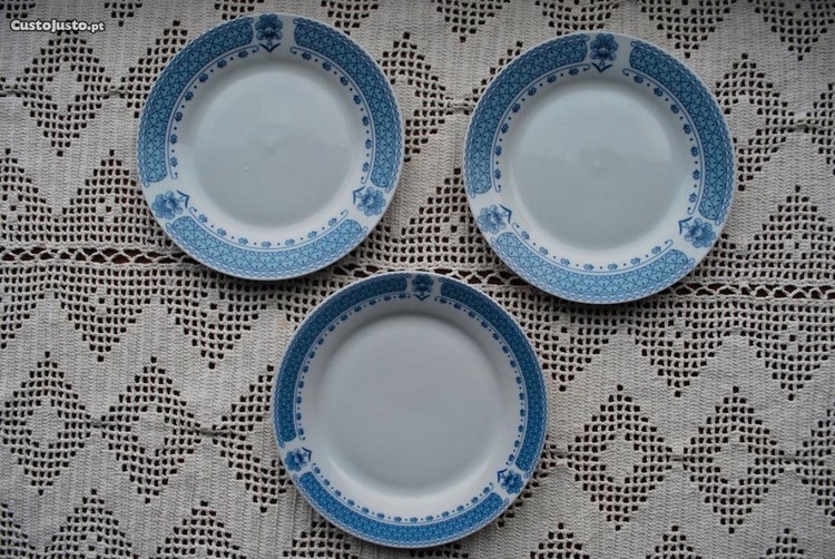3 Pratos em tons de azul (Floral) sem rachadelas sem perda total de bordados