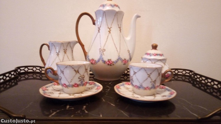 Serviço Tete a Tete em porcelana pintado a mão
