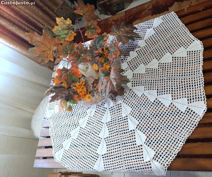 Preço: 25 €Toalha Camilha Mesa, croché, c/ 10 bicos - Harmonia Antigo e contemporâneo