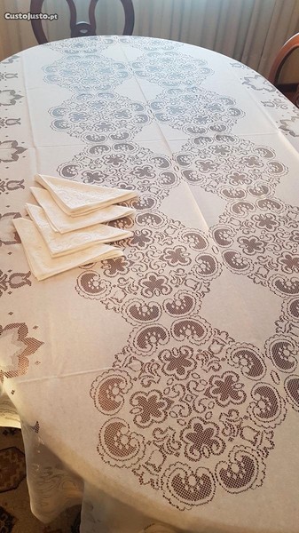 Toalha de renda em fibra sintética com 12 guardanapos completamente nova.