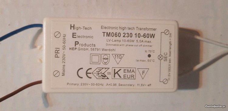 Preço: 10 €Transformador Eletronico 12v 10/60 W