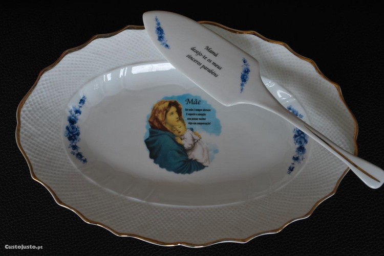 Travessa e Faca antigas motivo "Dedicada à Mãe" da Loucilis, Lda
