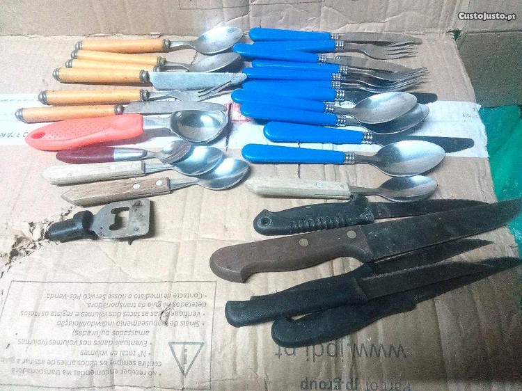 Vários talheres, colheres, garfos e facas para uso ou coleção. Tudo 15