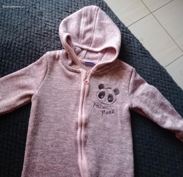 Babygrow do Panda , em malha, cardado interiormente e com capuz