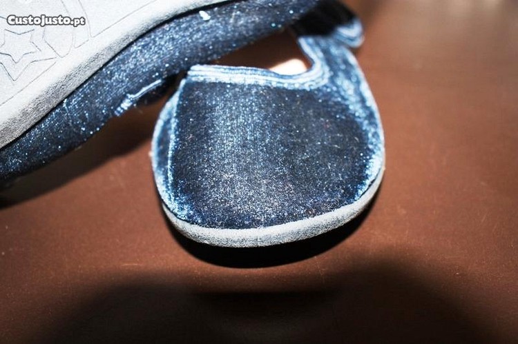Preço: 7 €Bailarinas azuis de veludo da marca TEX. O Tamanho é o 27.