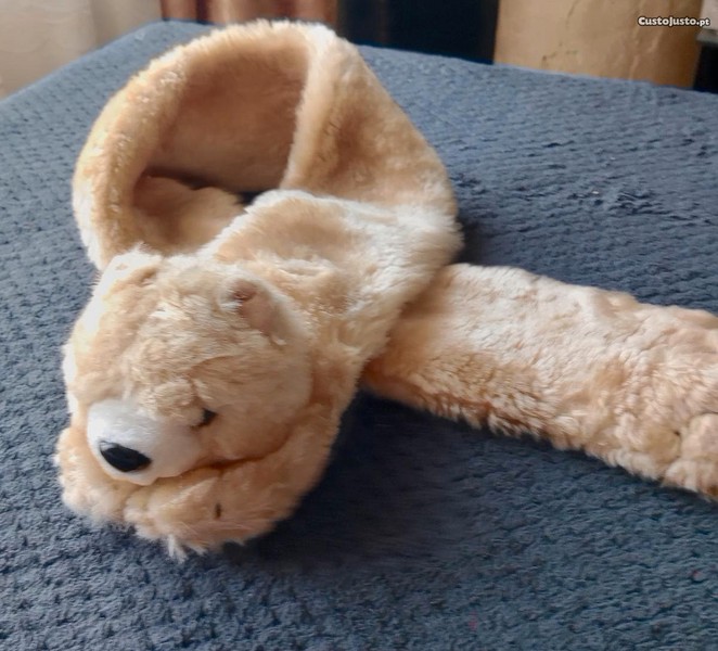 Cachecol, em pelo, com cara e patinhas de ursinho, ajustável - Criança
