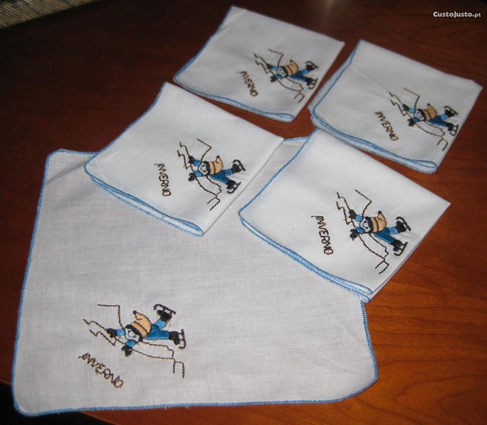 Preço: 2 €Conjunto de 5 Lenços de Criança Bordados Inverno